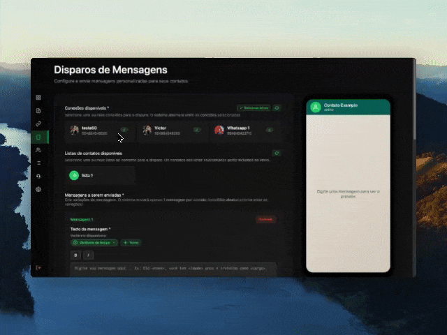 •Randomização de mensagens: Alterna entre as variações de mensagens a cada disparo
